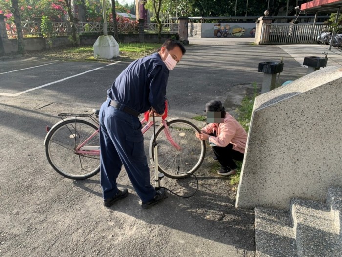 腳踏車輪胎「漏風」樂心鳳警幫忙協助