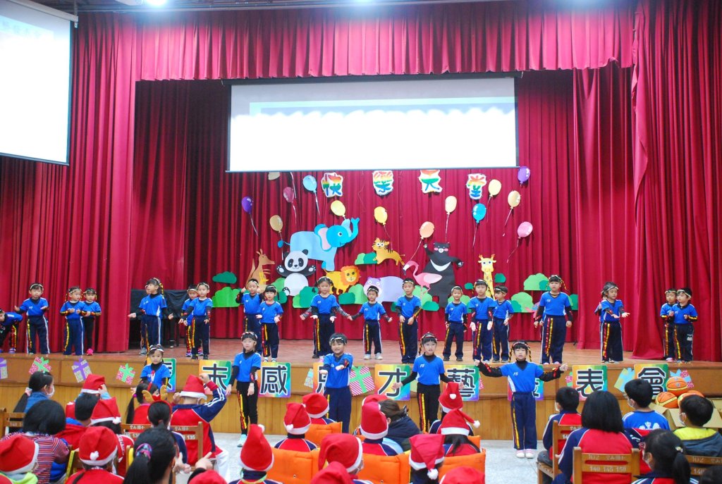 節目一開始,由幼兒園的小朋友以「聽我說謝謝你」拉開序幕,低年級的聖誕組曲、三年級的樂舞表演、四年級的戲劇表演、四和六年級的小提琴演奏,五年級布袋戲反毒宣導及將活動帶到最高潮的跆拳道表演,當教練手中的木板被學生用腳踼破的瞬間,全體觀眾報以熱烈的掌聲。