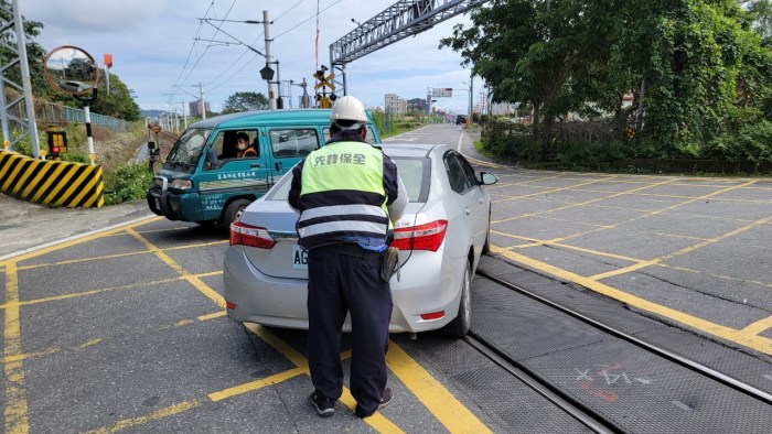 車輛卡平交道故障 機靈保全員協助脫困