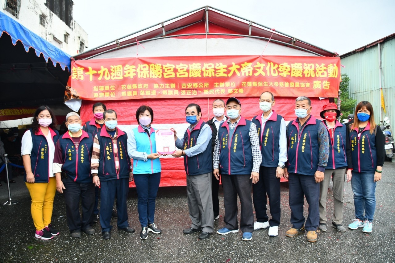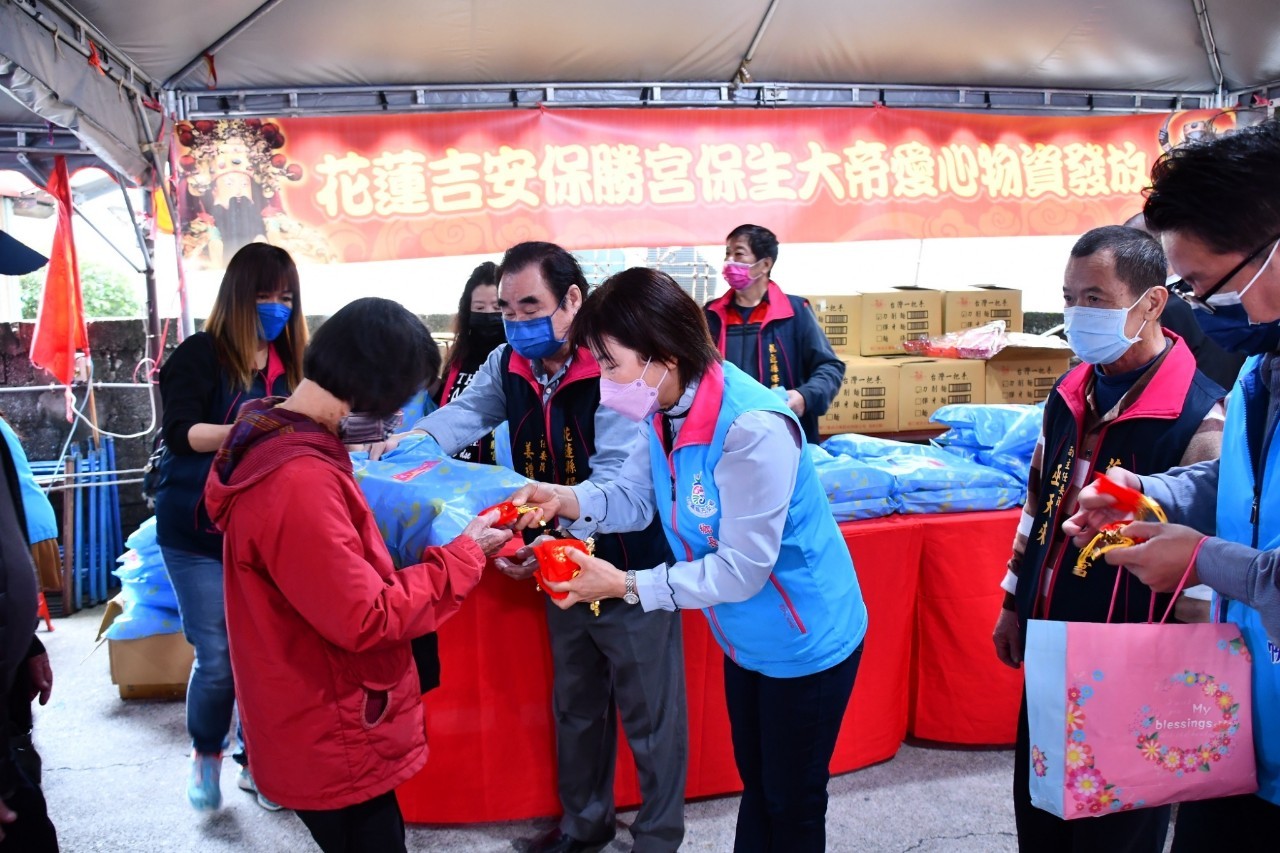 為奉行保生大帝懸壺濟世的精神,花蓮縣保生大帝慈善發展協會藉由保勝宮十九周年宮慶「保生大帝文化季」,攜手吉安鄉公所辦理愛心物資發放活動,由鄉長游淑貞偕同主任委員姜禮國以及多位委員、幹部,親自依序將物資轉交給鄉內三百個中低收入戶家庭,游淑貞更現場加碼贈送虎年限定紀念金幣,祝福所有鄉親福虎安康、如虎添「億」。