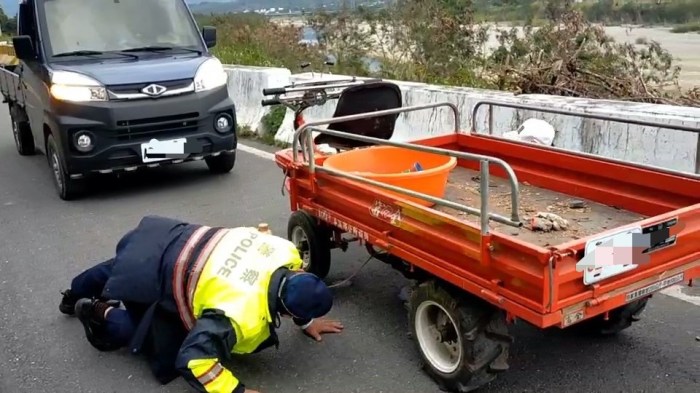 機車行駛花46線未料輪陷泥路 鳳警熱心協助脫離