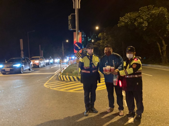和平村代理村長及代表贈咖啡 感謝警方春節期間付出