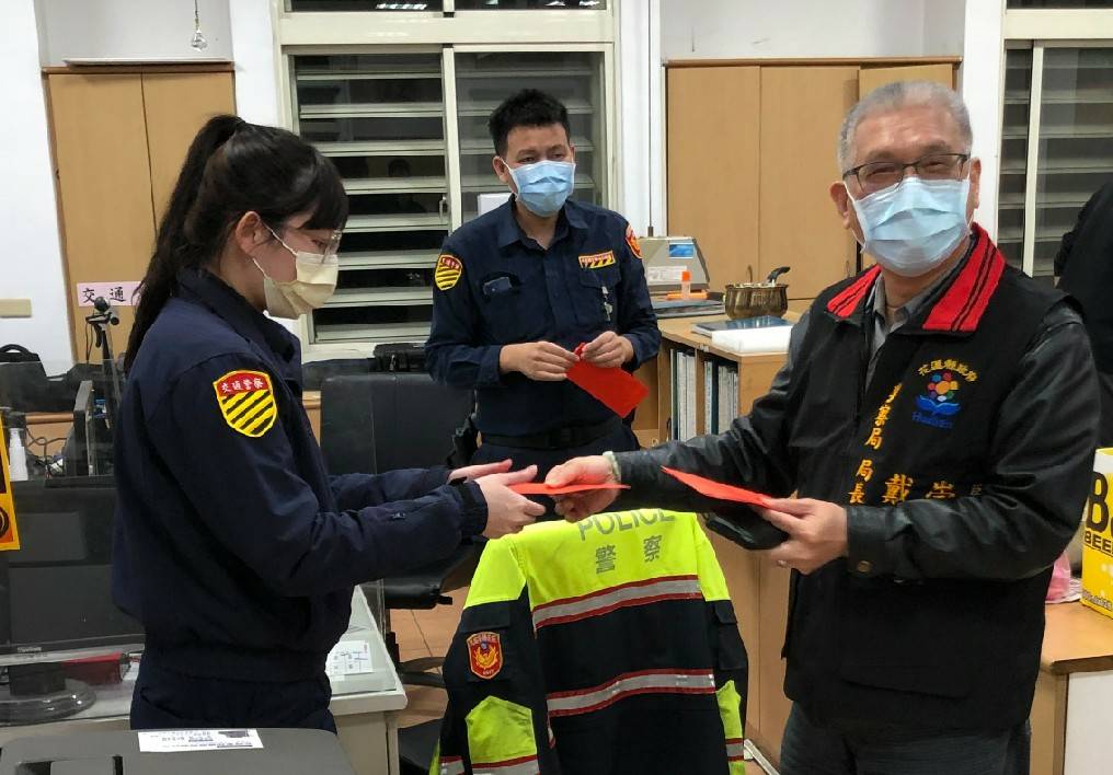 連假最後一天,外地旅客紛紛踏上返鄉路程,戴局長持續帶領警局團隊到花蓮分局轄區派出所及重要路口慰勉執勤員警並致贈紅包,祝福大家新年快樂,戴局長肯定與感謝員警於連假期間堅守崗位,認真執行交通疏導、保護民眾生命財產安全及為民服務等工作的辛勞,讓員警都覺得很暖心。
