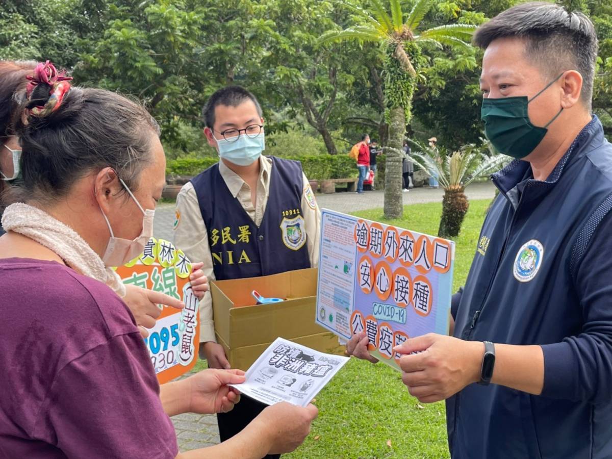 臺東縣專勤隊與臺東林管處吉祥物臺灣黑熊Mulas及Lituㄧ同向現場旅客、新住民及移工宣導,珍貴林木是全民共享的環境資源,如發現山老鼠濫砍濫伐,請立即電話檢舉;另因應春節祭拜習俗豬肉製品需求大增,專勤隊貼心提醒,切勿購買來源或標示不明肉製品或訂購郵寄國(境)外肉製品,一同守護臺灣豬,避免受罰。另外,專勤隊宣導逾期外來人口接種疫苗專案,印尼籍看護工阿妮表示:「之前透過臺東縣專勤隊協助預約,我和許多同鄉朋友都順利打到疫苗,會再幫忙打電話給更多印尼朋友出來打疫苗,增加防疫力!」。移民署秉持「不通報、不查處、不收費、不管制」四不原則,歡迎逾期外來人口踴躍出面接種疫苗,提升自我防疫力及疫苗覆蓋率。