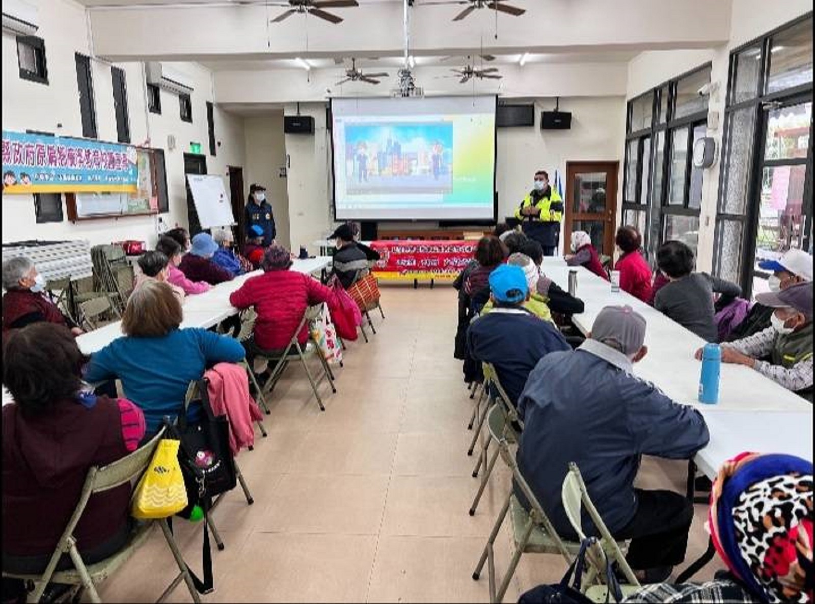 為了有效維護長者用路安全,吉安警分局稻香派出所日前運用轄區健康福氣站活動時段,向銀髮族宣導交通安全觀念及新法令,同時呼籲遵守騎乘電動自行車配戴安全帽的規定,警方當天準備了案例影音畫面,由副所長王逸仙向大家解說,在場長輩們個個目不轉睛,效果極佳。