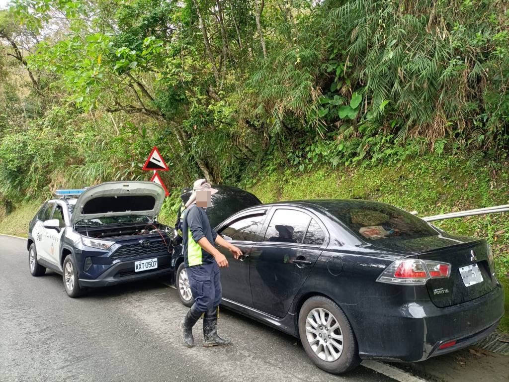 鳳林警分局豐濱分駐所所長楊思恆及巡佐宋國梁於昨(17)日10-12時執行交通大執法勤務,於11時許接獲值班員警通報在台11甲線光豐公路14.3公里處有車輛故障拋錨,員警立即前往現場處理,因該山區道路彎道多,唯恐其他車輛未注意前方動態致發生交通意外,立即於故障車輛前後適當位置放置交通錐示警,經了解陳姓男子務農結束欲返家時使用車輛無法啟動,員警檢視後研判該車熄火後大燈未關閉導致電瓶沒電無法啟動引擎,所長立即以巡邏車備用之接電線以接電方式果然使小客車正常啟動,陳男對員警積極為民服務之精神,由衷表示感謝。
