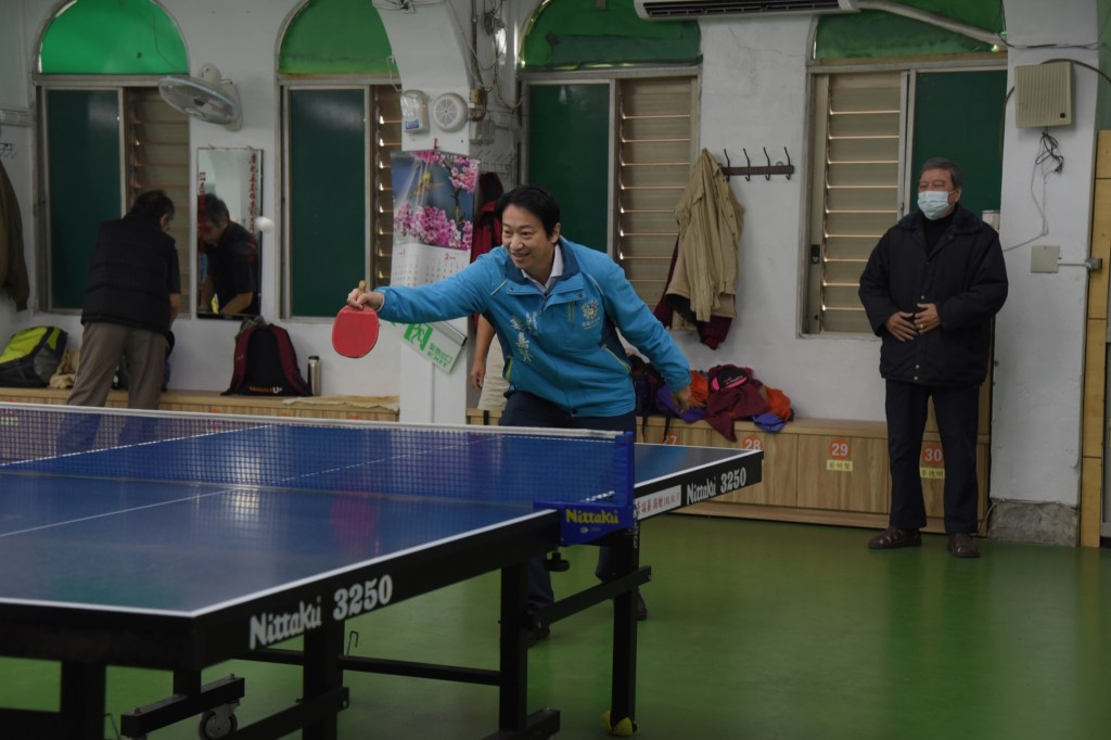 魏市長偕同社勞課長蕭子蔚來到會場,先到桌球室與會員切磋,球拍你來我往快速揮動,還來上幾記殺球,會員們肯定市長的球技,還歡迎市長有空來和大家一起揮拍。