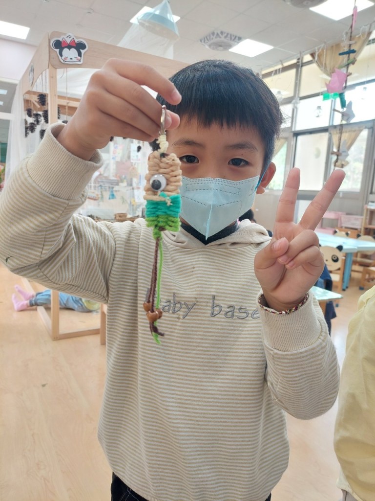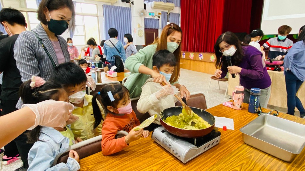 家長聽講座,孩子們也沒閒著,在豐山附設幼兒園賴曉蘭老師的指導下,現場製作家事編織「幸福的吊飾」送給家人,以表達對家人愛意。隨後,徐孟玲顧問指導與會家長和孩子們一起動手做綠豆涼糕,親子同樂的畫面備感溫馨。