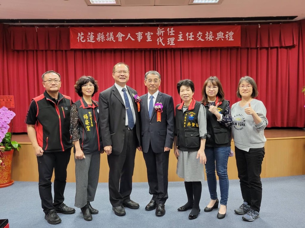 花蓮縣議會3/14日上午於一樓簡報室舉行人事室新任和代理主任交接典禮,典禮由秘書長陳德惠主持,行政院人事行政總處人事長蘇俊榮擔任監交人,與會貴賓有人事行政總處綜合規劃處長陳素枝、科長謝依霖、花蓮縣政府人事處副處長吳賢惠、國立東華大學副校長朱景鵬、國立台東專科學校校長王俊勝、人事室專員王慧伶等人,笛布斯˙顗賚議員、議會主管與職員及也都到場觀禮,交接儀式簡單而隆重,李主任特別感謝張峻議長的認可和蘇人事長的同意,給他一個回到花蓮服務的機會。