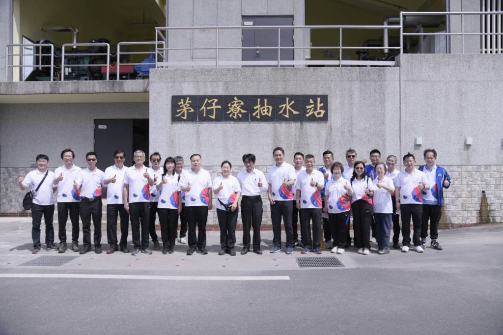 徐縣長一行人隨後到達五結茅仔寮抽水站,宜蘭縣政府水利資源處長李岳儒介紹抽水站設施,邀請徐榛蔚縣長啟動抽水機按鈕,到排水口實地觀看排水狀況,並在祈福卡上簽名,祈求兩縣風調雨順、闔境平安。