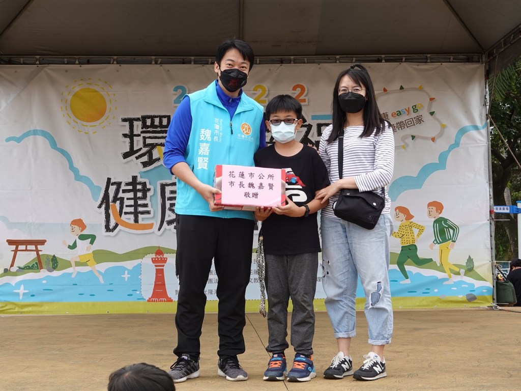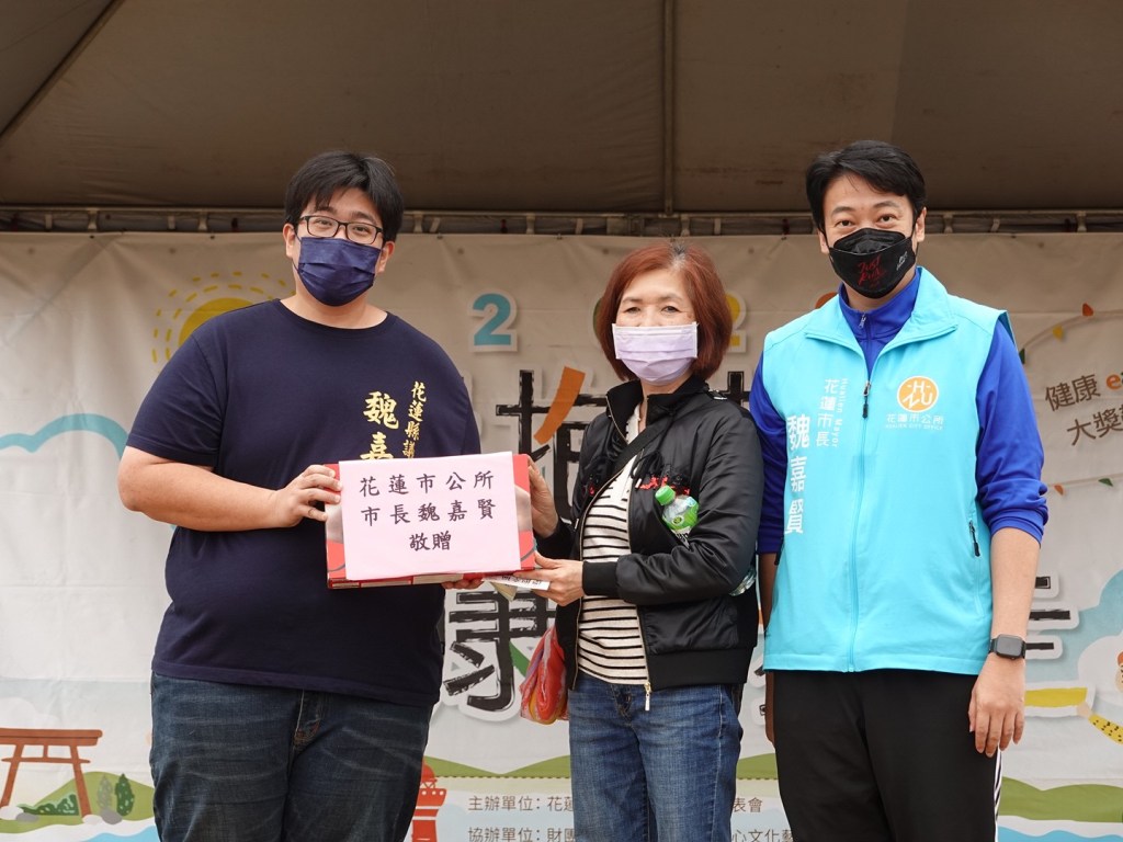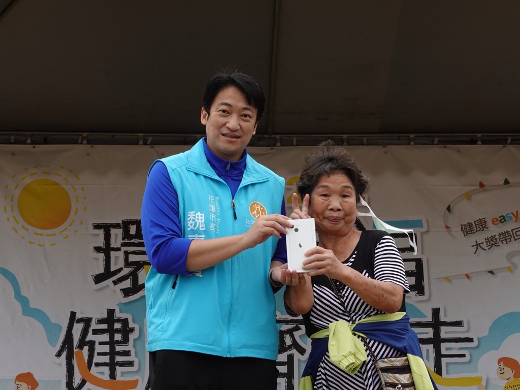 魏嘉賢市長表示,健走是最貼近民眾生活習慣的有氧運動,除了可以維持體態,也能預防慢性疾病、減少衰弱症及舒緩壓力,市公所除定期在每年春季舉辦健走活動之外,也推動低碳鐵馬行,希望藉此增進花蓮鄉親的健康體魄,也培養親子間的情感及溝通管道,歡迎大家多多參與市公所辦的活動。接下來,3月26日,晚上8點半在港天宮舉辦與全球同步關燈一小時活動,也歡迎民眾一起來響應,關上不必要的燈,讓世界更好。 完走的民眾還能看表演,這次邀請到Idas 樂團、One Step 一步工作室,分別帶來好聽的歌曲及精彩的舞蹈表演,許多大小朋友陶醉在旋律中,跟著擺動身體,十分愜意。 活動現場也設有早安市集,用美食為民眾補充能量外,還有中央、縣府局處及所內共16個政令宣導攤位,包括有國軍人才招募、北區國稅局花蓮分局、經濟部標準檢驗局花蓮分局、台灣自來水公司第九區管理處、台電花蓮區營業處、健保署東區業務組、地方稅務局、身心健康及成癮防治所、花蓮縣環保局、光隆海洋生技、以及市公所設置的防災、廉政、社福、以物換物等宣導攤位,都有提供有獎徵答、玩遊戲拿好禮,讓活動更加豐富有趣,每一攤位都大排長龍,民眾也收穫滿滿。 活動的最高潮,就是摸彩活動,這次市公所提供近百項的摸彩品,包括有I PHONE 13、Switch 遊戲主機、飛利浦智慧萬用鍋、TECO蒸氣烤箱,獎項由魏市長陸續抽出,魏市長抽出大獎市價近3萬元的I PHONE 13,幸運兒是花蓮市民林小姐,抽獎活動也在市長加碼2台Switch 遊戲主機中,畫下完美的句點。