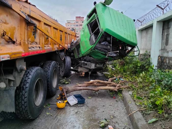 花蓮事曳引拖車過彎失控自撞圍牆交通事故
