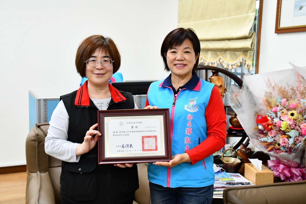 「工商普查逗陣來,臺灣經濟亮起來!」日前花蓮縣政府主計處長阮靜如也特別拜訪鄉公所,與鄉長游淑貞共同拍攝宣傳影片,同時頒發獎狀肯定公所於「109年農林漁牧業普查」執行成效優良,也期盼吉安鄉延續普查工作的優異表現。游淑貞說,吉安鄉公所於「109年人口及住宅普查」榮獲宜花東唯一優等殊榮,相信今年度在團隊的合作下,普查任務將圓滿達成。