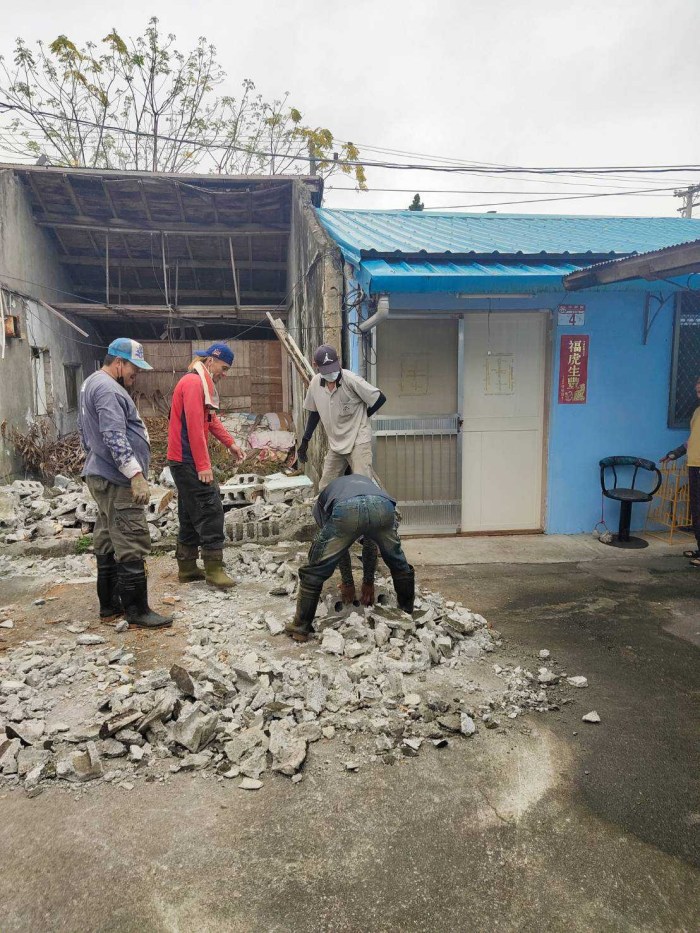 玉里鎮永昌里民宅圍牆崩塌 鎮長江東成第一時間責令公所清潔隊員排除路障