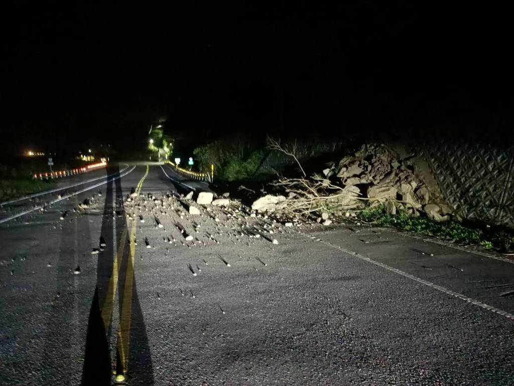 花東強震,造成臺東11線長濱鄉、東河鄉多處路段邊坡坍方或出現落石,影響半線路面。