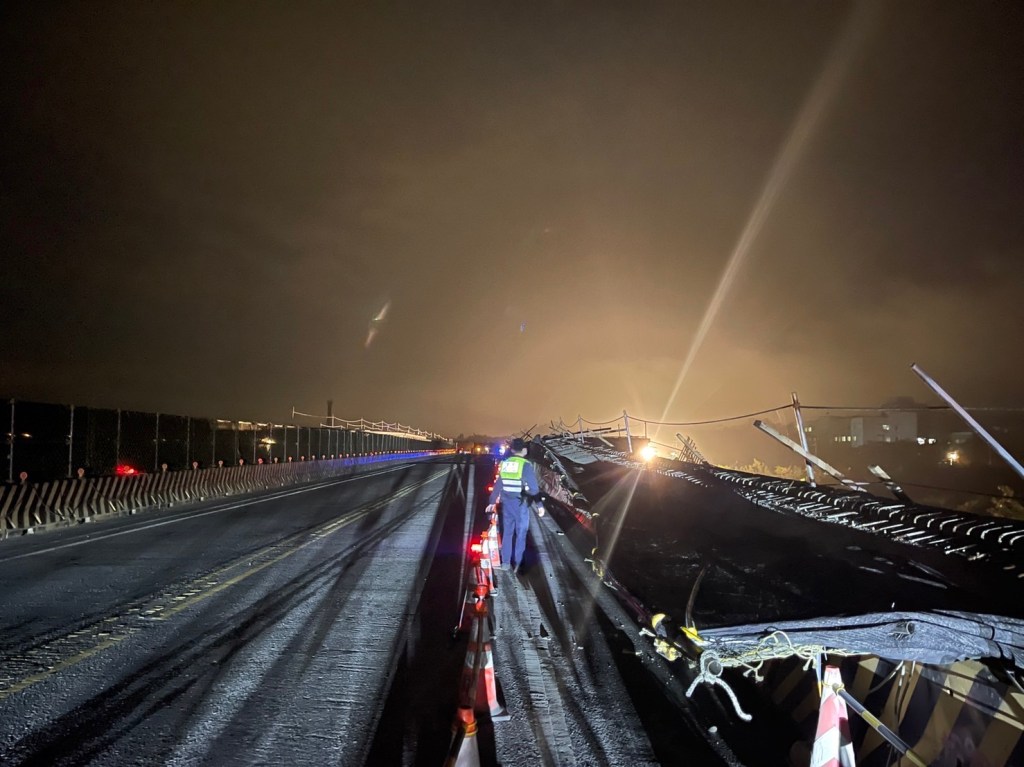 另外有「落石、土石坍方、道路龜裂」的災害,臺9線264.5公里有落石,三民所員警於3時許已移置路肩,道路恢復暢通;臺9線271公里南下有路燈倒塌,大禹所員警至現場先行將掉落之路燈移至路旁擺放固定,並放置三角錐及哈雷燈警示;富里鄉阿眉溪往六十石山約4至5公里處也有落石與倒木,但經員警前往現場未影響交通,另也已通知清潔隊前往處理倒木;竹田村聯絡道路約4公里處雖道路有龜裂但不影響道路通行。