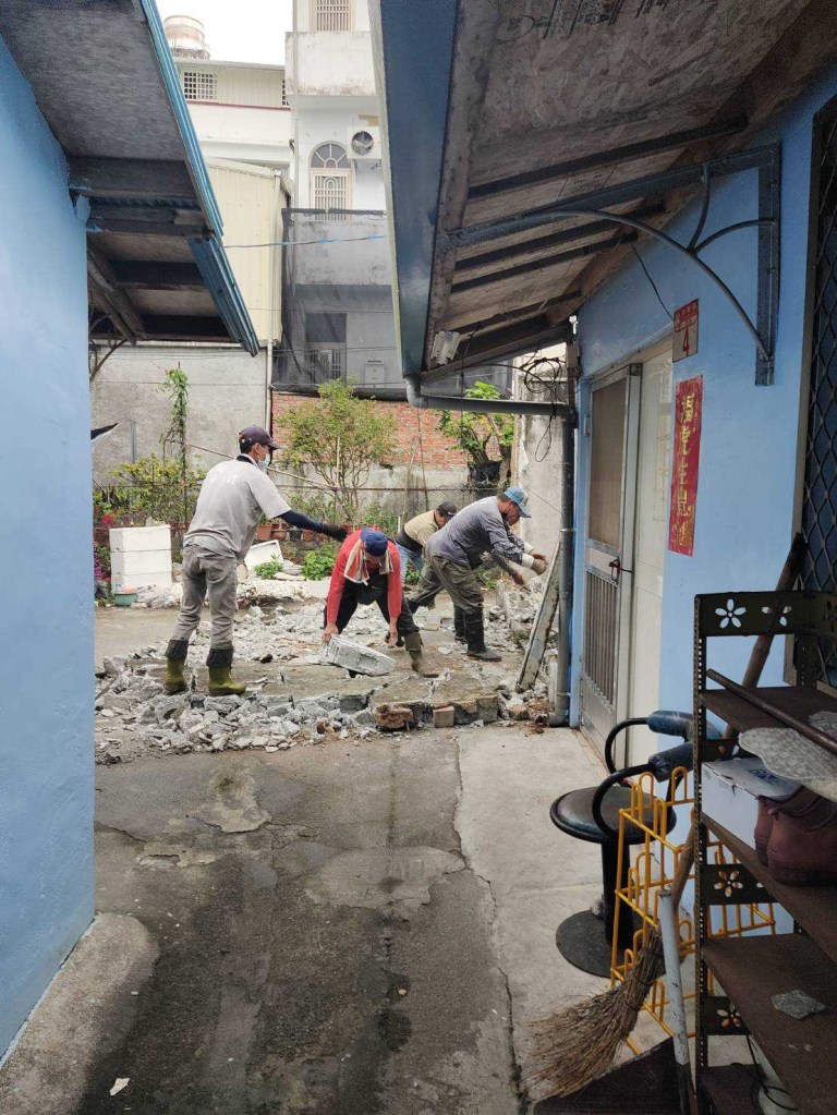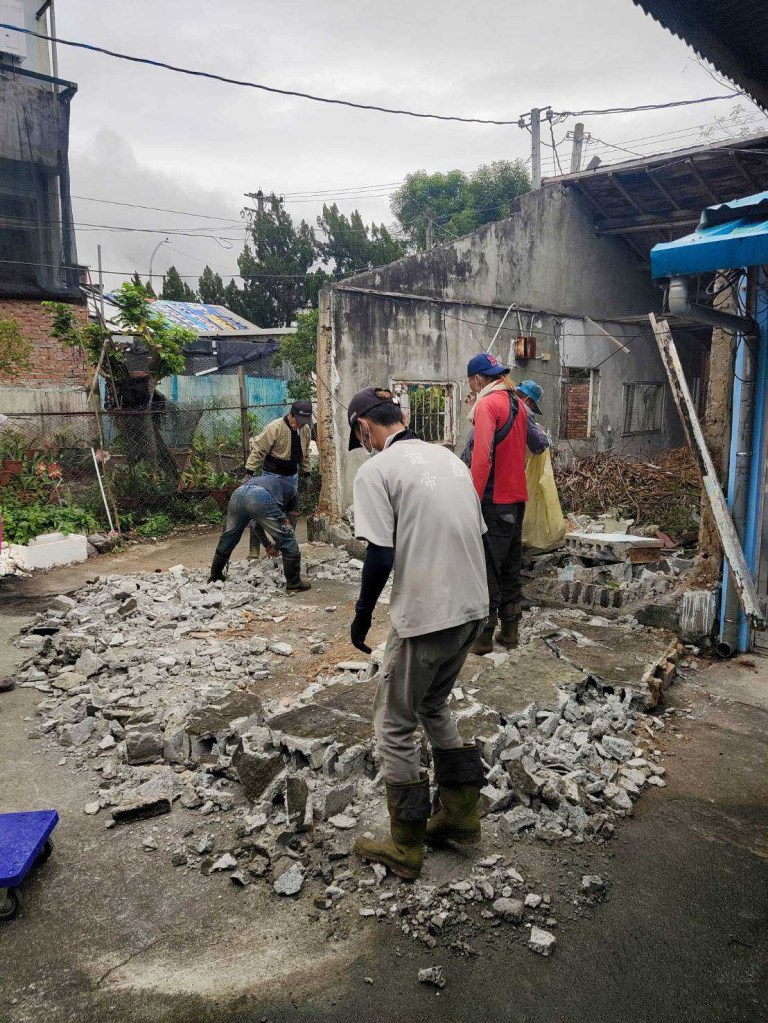 鎮長江東成謝公所清潔隊員第一時間立即前往永昌里中華路352巷4號民宅清運倒塌圍牆,恢復社區住戶道路通行。並表示,接下來幾日公所除了加速查報工作掌握第一手災情外,也會積極與有關單位及部門協同合作,勢必要盡全力守護住鎮民們的生命財產安全。