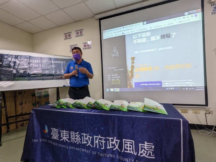 記者 姜嘉瑋/臺東報導 延續去年「基層地區客製化廉政服務計畫」成果,臺東縣政府政風處自今年3月22日起兵分 … 繼續閱讀 臺東縣政府政風處兵分三路基層各單位宣導 「廉手」建構「真、善、美」廉潔家園