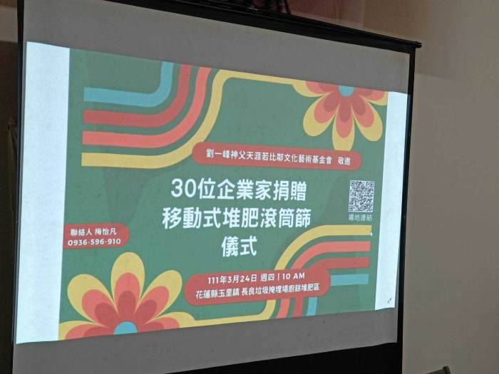 記者 姜嘉瑋/玉里報導 今(24)日玉里天主堂舉辦【30位企業家聯合捐贈移動式堆肥滾筒篩捐贈儀式暨記者會】,公 … 繼續閱讀 鎮公所受邀參與玉里天主堂舉辦「移動式堆肥滾筒篩捐贈儀式記者會」
