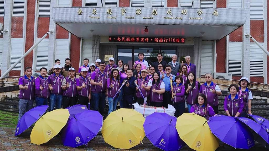 國際獅子會第八聯合會(300-D2區)熱心公益,3月23日由駐區榮譽總監周麗華、總監張邱美嬌等38位獅兄姐,於3月23日造訪臺東縣警察局成功分局致贈愛心傘300支,由分局長郭譯隆代表受贈並回贈感謝狀。