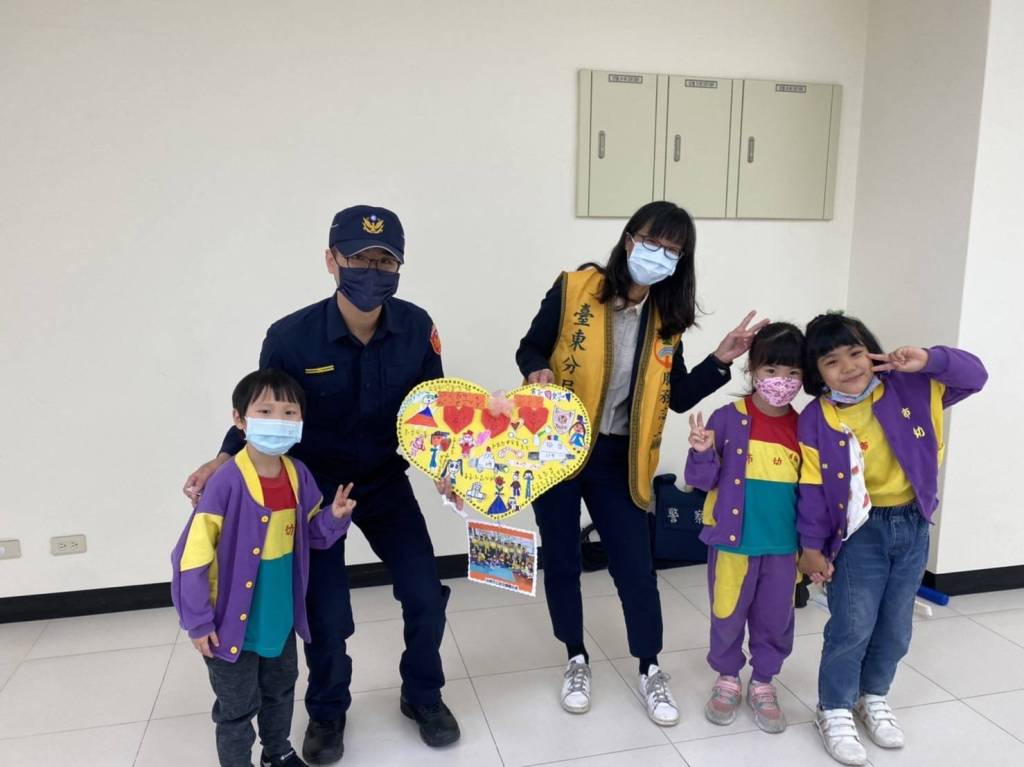 臺東縣警察分局表示,利用這次活動向學童宣導基本常識及有獎徵答方式深入學童身心,更加希望可以影響家人遵守交通規則及犯罪預防等,小朋友也貼心送上自製卡片,警察叔叔和阿姨也再次提醒小朋友,有問題記得找警察,別忘了警察永遠是小朋友的好朋友,最後全體學童在派出所前合影留念。
