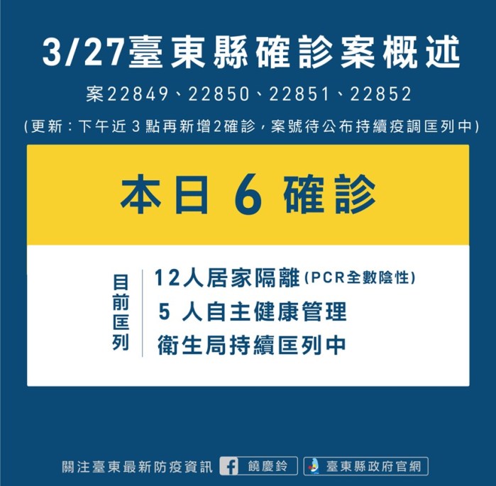 台東縣深夜新增1確診個案 緊急匡列後再+3 縣府:12:30初鹿快篩站啟動