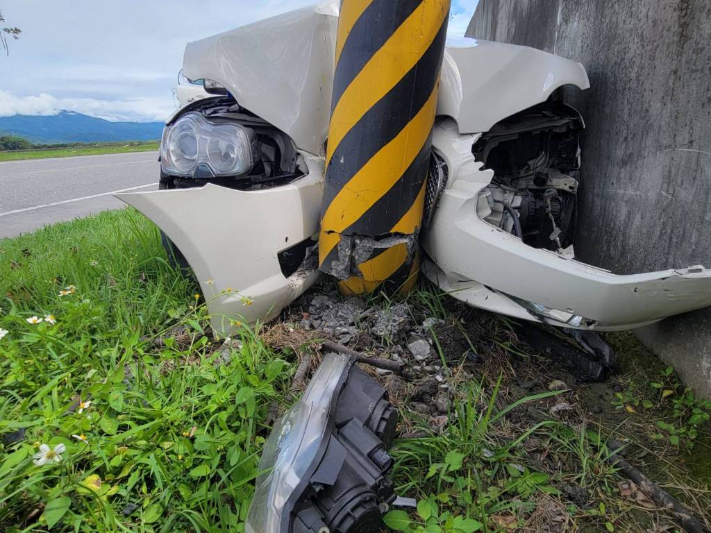 據了解,上午十時許,玉里杏林中醫診所張姓醫師駕駛自小客車於193縣道往南行駛,行經樂合段時疑似因為精神不濟,行徑偏離車道超越對向,最後撞上北上車道路側電桿,導致電桿斷掉,車頭全毀零件四散,車內安全氣囊全爆開,張醫師一度受困車內,經由消防分隊抵達後救護送醫,所幸駕駛無生命危險。