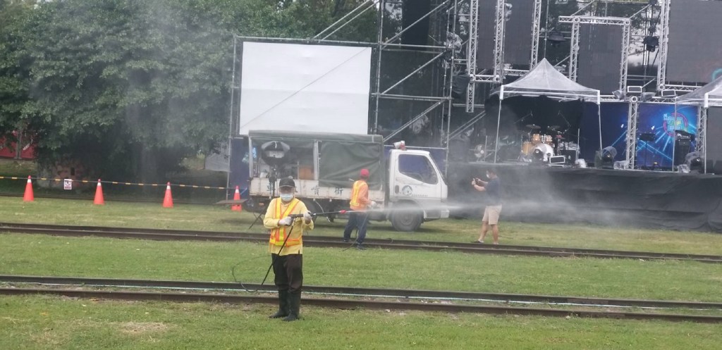同時也針對縣府所舉辦電音活動場所臺東轉運站後方草地,於事前、事後採取全面性清消作業,提高平時消毒頻率,並配合衛生主管機關防疫疫調,對於確診者足跡進行環境消毒,希望能夠保護縣民及遊客的健康,也請大家做好個人防護,落實居家環境清消工作,一起守護臺東。