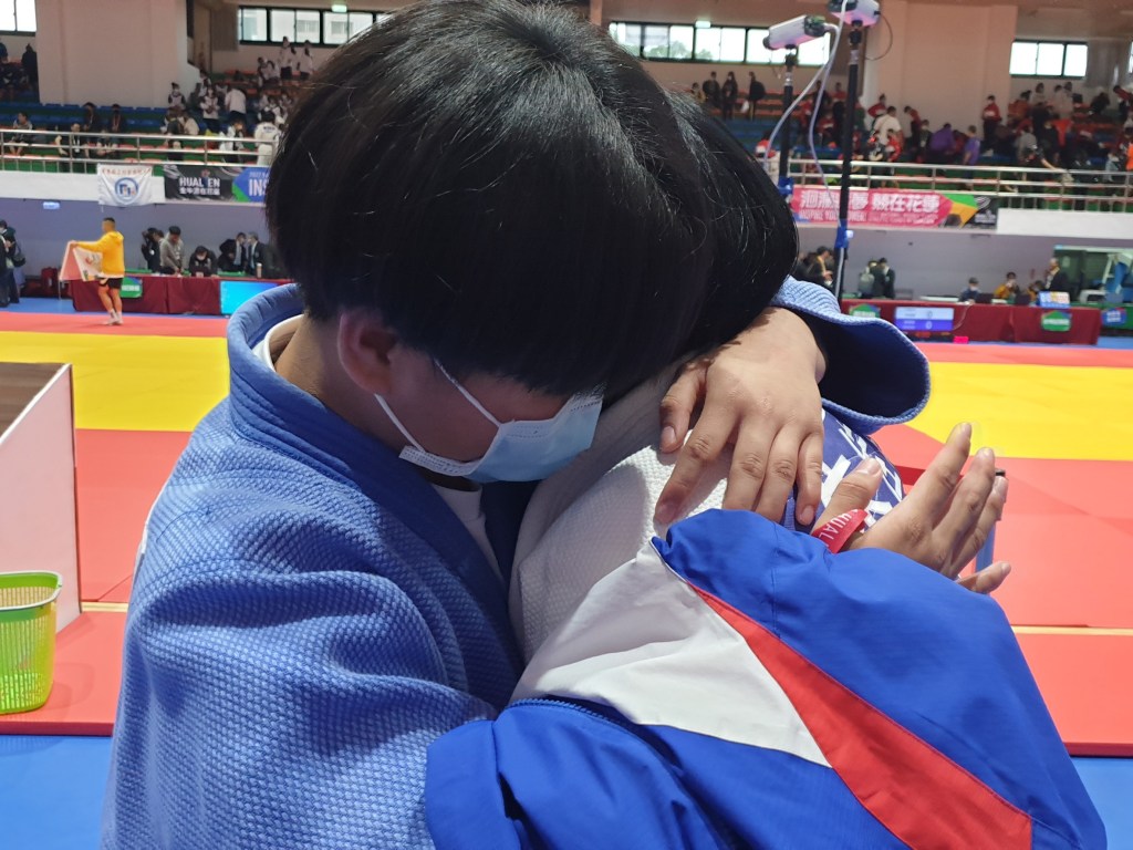 金牌選手中,新竹縣尖石國中徐子堯及徐子樂為兄弟,兄弟倆表示非常高興同獲金牌,感謝家長及學校、教練的的支持,也慶幸自己從未放棄;金牌教練胡夏芬指出,兄弟倆是到國中才接觸柔道,學習不到三年卻很能吃苦,尤其要有很強的自制力以維持體重;尖石國中校長彭清宏親自帶隊參賽,對兄弟雙金牌表示與有榮焉,也感謝胡夏芬教練及其夫婿劉文明犧牲假日,用生命與愛來培訓孩子們,學校將持續給予師生絕對的支持和鼓勵,並希望同學們從學習體育中養成良好品德,日後成為社會棟樑。 新北市正德國中郭育誠在決賽中對戰同班同學姚偉恩,郭育成表示平日和姚偉恩一起訓練,是感情很好的哥兒們,但在賽場上也會奮力征戰,賽中郭育成因手指受傷接受包紮,場中的姚偉恩甚是驚訝但也冷靜等待,所幸傷勢無礙,最終同學倆分別獲得金牌及銀牌,歡喜收場。教練高國盛表示,二位同學很認真練習,此次能有好成績是學校教練團及學校師長的功勞,也希望二位同學到高中後仍能發揮所長,兼顧學業繼續學習柔道。 國女組柔道第八級決賽由臺東縣東大體中學妹楊博雅對戰同校學姊朱佳琪,最終由楊博雅獲得金牌,朱佳琪獲得銀牌,學姊朱佳琪於110年全中運獲得銅牌,今年希望有更好的成績,得知獲得銀牌不免有些遺憾,二人相擁而泣。楊博雅表示面對學姊雖然有點不好意思,但場上仍會全力以赴,朱佳琪很快回復心情,表示直升體中後會繼續學習柔道,並給予學妹滿滿恭喜和祝福,二人破涕為笑,場面令人動容。