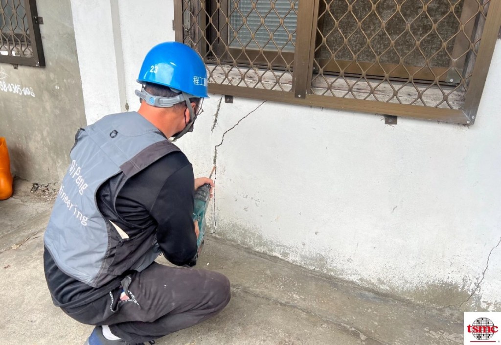 4月7日上午11時,台積電公共設施服務部技術經理榮一弘與結構技師栗正暐前往地震受災戶住家進行第二次複勘,公所由秘書張一旻及民政課長羅中帥陪同前往,並由結構技師進行評估。隔(8)日台積電慈善基金會立即派員至受災戶家中進駐施工,並於當日將新民及樂合社區住戶牆面裂痕打鑿、修補。周末(9)日則進行牆面油漆粉刷。台積電慈善基金會愛心的善舉與腳步毫不停歇,只為了儘速修復地震受災戶的家園,保障住戶們的安全。