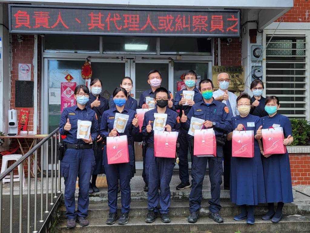 4月9日新城警分局北埔派出所員警查獲一名涉嫌公共危險罪的男子,帶回派出所時該男表示身體不適,員警立即通知消防隊到場協助,到院後經PCR檢測結果為新冠肺炎確診者,北埔派出所及北埔消防分隊共有6人居家隔離,5名則是自主健康管理,慈濟警察消防暨眷屬聯誼會得知消息後於今日帶著物資前往北埔派出所及北埔消防分隊,關心大家的身體健康安全,也為第一線的警消同仁加油打氣。