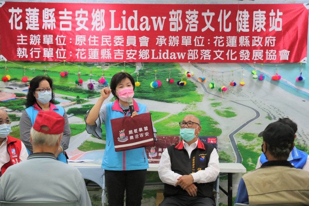 同為吉安鄉Lidaw部落文化發展協會理事長的陳進德代表表示,感謝中央、地方政府的支持與協助,部落今年能順利爭取到文健站的開站經費。更要感謝鄉公所及代表、村長、頭目以及族人的支持,有大家盡心盡力的幫忙,文健站才能順利完成開站工作。定會與社區照服員、義工一起努力,提供部落的大寶貝們,更多元的照護服務、延緩失智,讓大家可以越來越開心、越來越健康樂活。 游淑貞致詞中多次感謝中央、縣府的大力支持,讓吉安鄉部落文健站,順利拓展至11處服務據點,將順利落實在地各部落照護長輩養老生活。她也表示,里漏部落是吉安鄉境內深具傳統文化、歷史的部落,謝謝協會承擔起服務工作,共構適性照顧推力、就近照護耆老們的健康。誠摯邀請部落的長輩能多運用文健站的資源踴躍上課,也歡迎長輩帶家中的小孫子寶貝共學、成長。 原民處副處長督固.撒耘表示「照護長者的腳步不能停、脈絡更不能斷」,各據點推手及義工的熱心,共構花蓮縣的服務區塊深入社區部落、就近照顧鄉親健康。