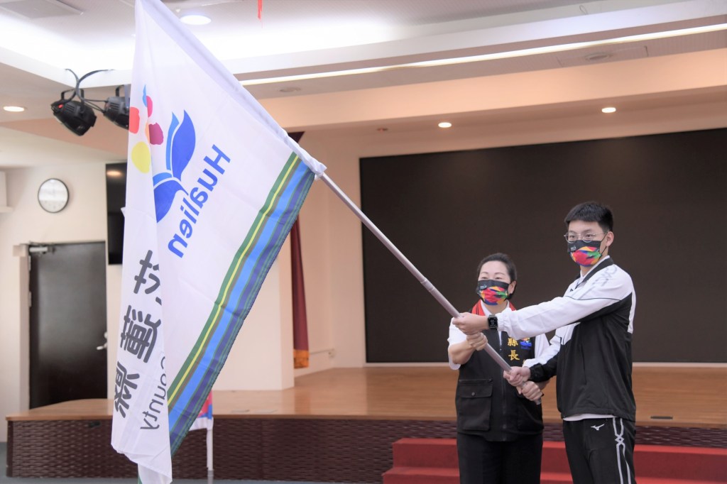 111年全國中等學校運動會即將在4月16日至21日於花蓮縣登場,花蓮縣長徐榛蔚今(12)日在教育處代理處長翁書敏及花蓮縣體育會理事長汪錦德陪同下,於縣府大禮堂親自授旗,預祝代表隊選手奪得佳績。