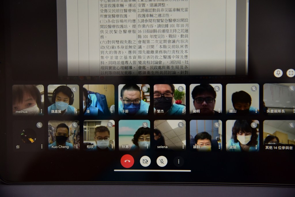 花蓮市公所在花蓮出現第一例確診者後,率各鄉鎮之先執行異地辦公,這週的市務會報及今年度第一次災害防救會報也考量到社交距離,採取線上視訊會議。魏嘉賢市長在會中再三強調,公所同仁務必要落實防疫措施,若有因足跡重疊而被通知匡列,必須在第一時間向主管報告,絕對不能刻意隱瞞。