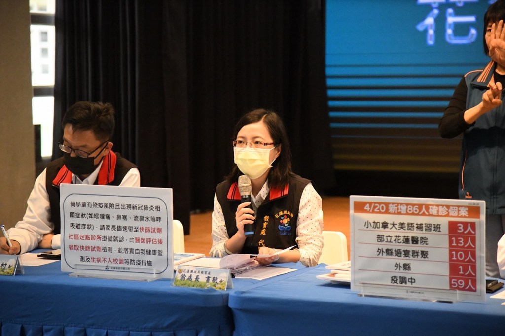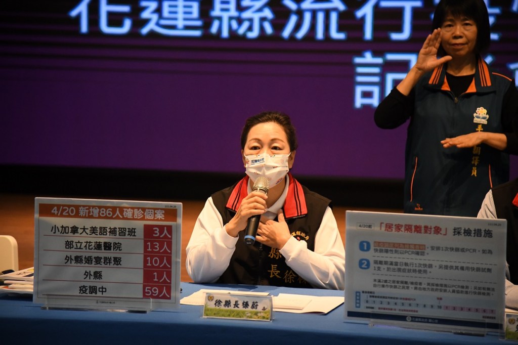 花蓮縣今(20)日新增86例新冠肺炎確診個案,花蓮縣政府召開疫情說明記者會,由縣長徐榛蔚、衛生局長朱家祥、教育處代理處長翁書敏、社會處長陳加富與原民處長陳建村召開防疫記者會,對於居家照護提供相關協助,並說明防疫補償金申請資格。