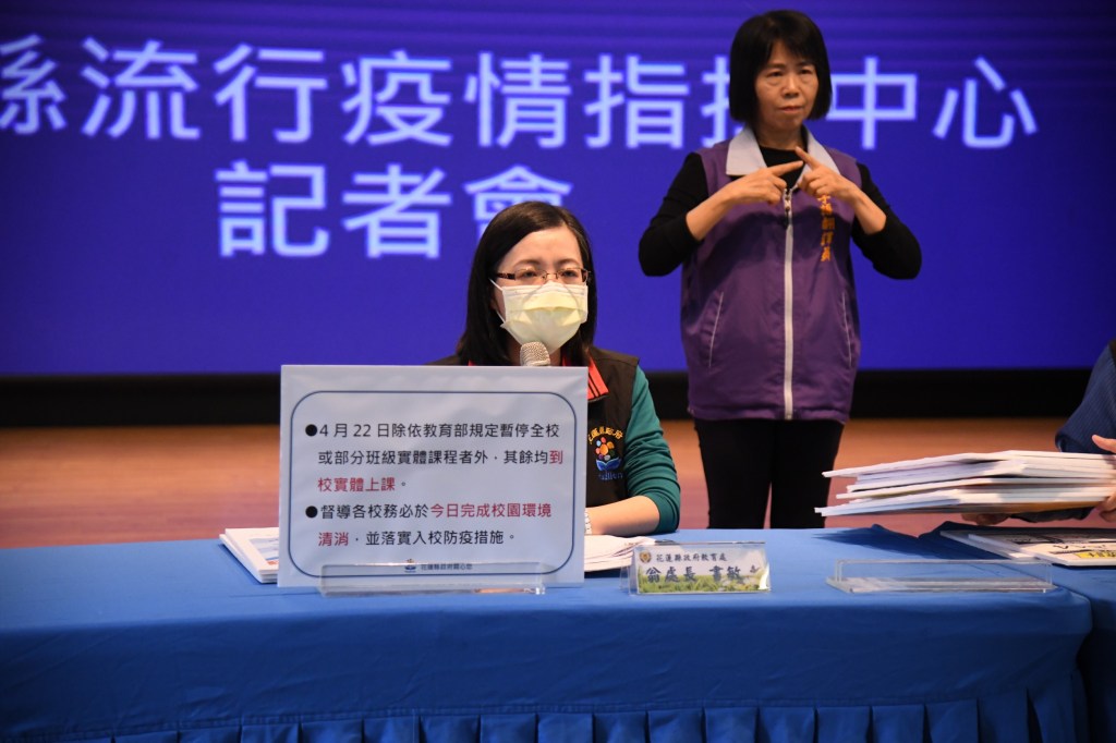 教育處代理處長翁書敏說明,有關今日新增暫停實體課程校園共4所,包含花崗國中確診2人,花蓮高中、銅門國小、水源國小及附幼各確診1人,該班級將暫停實體課程;另截至今日為止,花蓮全縣合計45所學校暫停實體課程,包含花蓮市22所、吉安鄉5所、秀林鄉11所、新城鄉5所、鳳林鎮1所、萬榮鄉1所。
