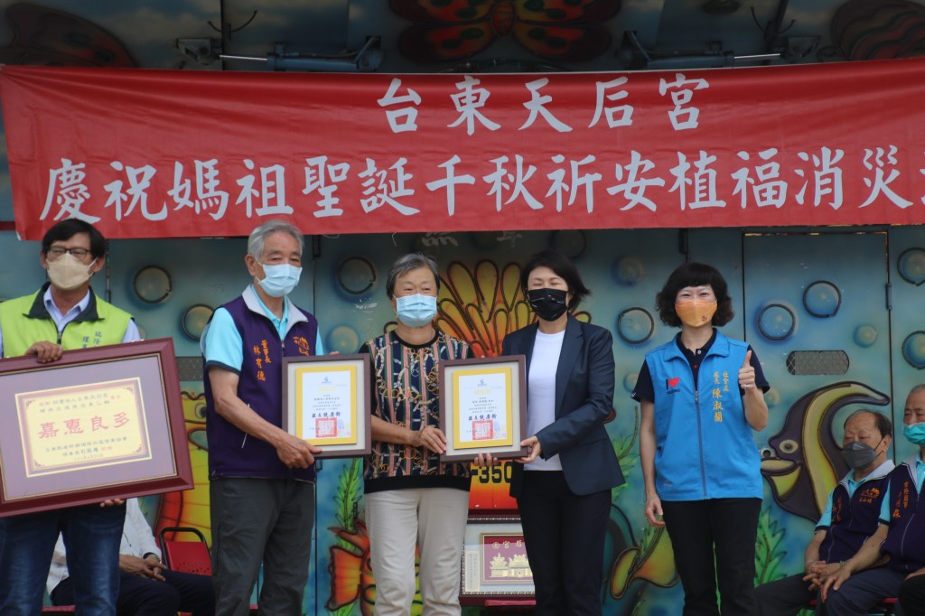 饒縣長也表示,今天恰好是媽祖生日,在這重要的日子裡,天后宮及善心黃女士發揚了媽祖慈悲保佑眾生精神,對長輩及學童們伸出最溫暖的雙手,奉獻大愛,這是給媽祖以及鄉親最美好的禮物,並代表臺東縣民致上最誠摯的感謝。另外,天后宮也將在今(111)年國曆9月20日起九天,舉辦12年1次虎年全台東市建醮活動,期許能為社會帶來更多正能量,讓美好事情持續發生。