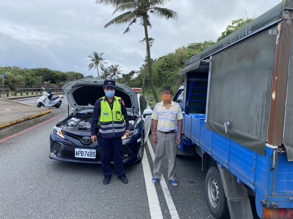 鳳林警分局港口派出所副所長陳文智日前執行14-17時巡邏勤務,於15時許巡至石梯坪遊憩區停車場時,發現有一部自小貨車停放於停車格內,一名男子在旁檢視該車引擎及電瓶,因近日國際發生俄、烏戰爭,導致許多原物料價格飛升,他縣市已發生多起不法之徒趁機偷取小貨車之電瓶或觸媒轉換器等高價零件變賣之治安事故,為預防竊盜案件發生,針對常有貨車停放之處所編排警力加強巡邏,副所長見狀立即上前盤查,經了解原來該男子姓詹是車主本人,家住光復鄉,當日凌晨至該處海攤釣魚,離開車輛時忘記關大燈,直到下午要返家發動引擎時才發現大燈未關電瓶電力已經耗盡沒有辦法再發動,副所長立即以巡邏車備用之接電線以接電方式使小貨車正常啟動,離去前詹男對員警即時的救援再三表示由衷感謝,也對員警維護治安盤查可疑的積極態度表示敬佩與讚許。