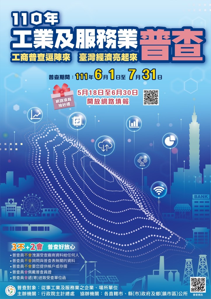 「工商普查逗陣來,臺灣經濟亮起來」,工業及服務業普查工作將於6月1日開跑囉!