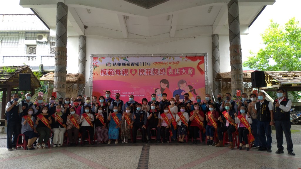 此次表揚大會模範婆媳為大安村何純英女士、唐淑貞女士;模範母親則有大同村張秀珠女士,同時也代表光復鄉至縣府表揚、北富村潘草枝女士、大馬村張月妹女士、南富村章金蓮女士、東富村謝惠妹女士、西富村賴金花女士、大富村潘桂寅女士、大華村黃廖玉蘭女士、大豐村王秀菊女士、大進村胡素鳴女士、大興村陳月英女士、大安村吳玉媛女士、大平村蔡玉蘭女士、大全村張瑞枝女士。