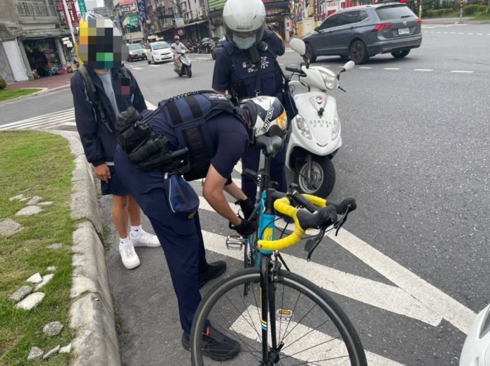 學生自行車落鍊摔車 員警化身黑手救援