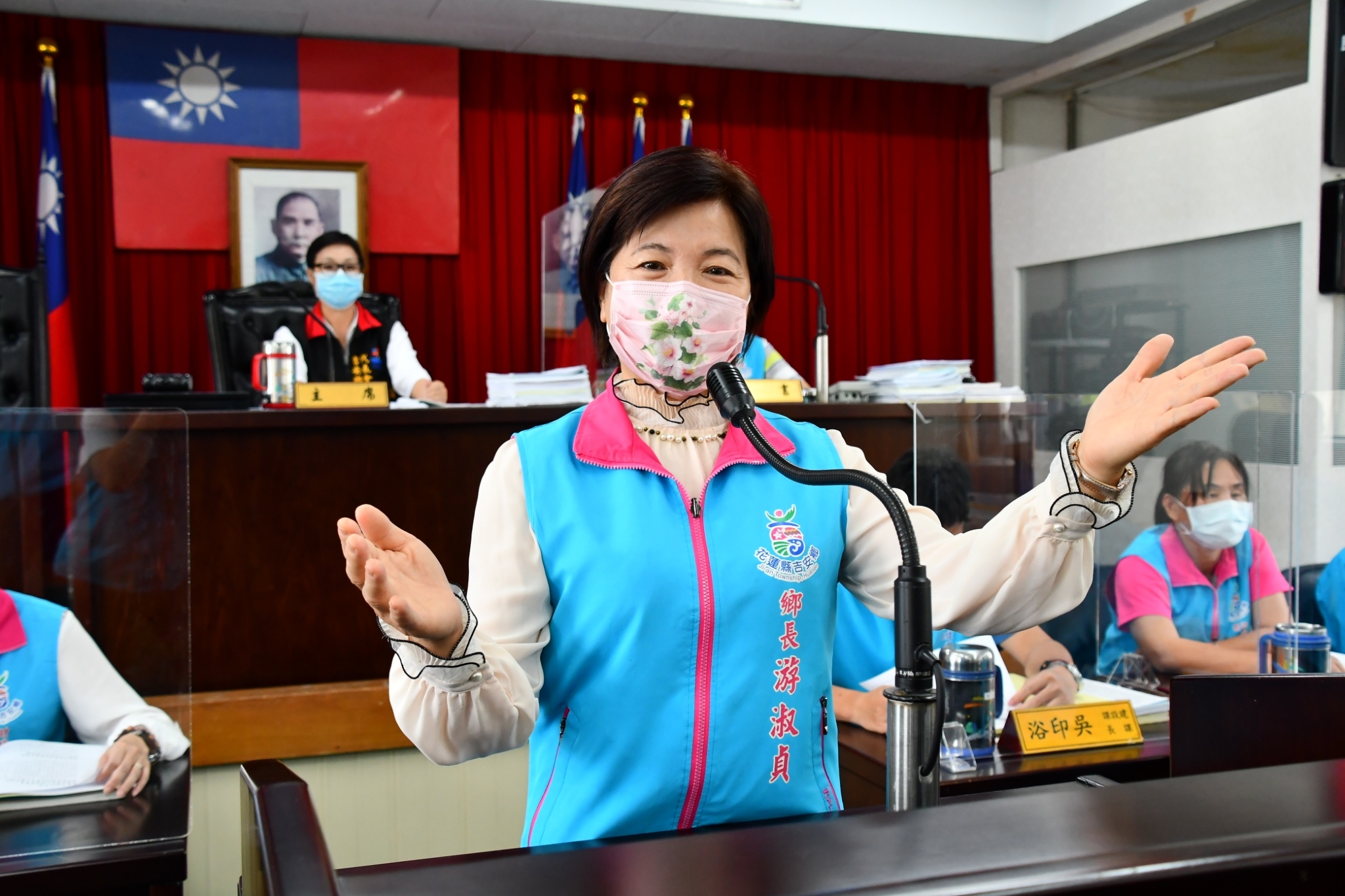 游淑貞提及,面對疫情嚴峻,吉安為全縣新冠疫苗1、2、3劑施打覆蓋率最高,公所清潔車全年無休巡迴式清消、提供各村定點次氯酸鈉水桶隨時取用,但仍不免遭受來勢洶洶的染疫潮,也傾全力協助縣府分送防疫照護關懷包至今達1661份,願善盡公所能量開啟在地防護措施,維護鄉親健康與生活。謝謝代表會協力公所建設,支持通過每一項重要建設作為的經費預算,尤其在施政執行過程中更給於公所友善鞭策、有效監督和優質建議,以完成金質吉安的鄉城福祉。