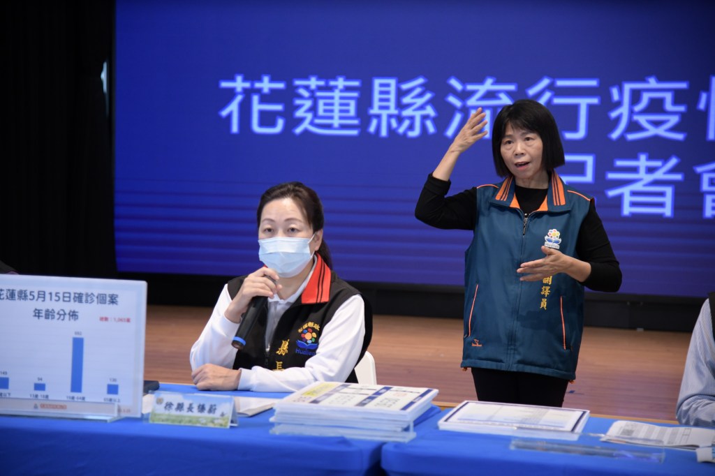花蓮縣今(15)日新增1065例新冠肺炎確診個案,花蓮縣政府召開疫情說明記者會,由縣長徐榛蔚、衛生局長朱家祥與教育處代理處長翁書敏召開防疫記者會。明日起針對快篩陽性65歲以上長者,在視訊診療後,經醫師評估有需要即開立處方,再由家人至診所端取藥。