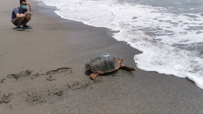 救援康復後赤蠵龜裝設發報器野放返回大海 期收集洄游資訊了解生態分布