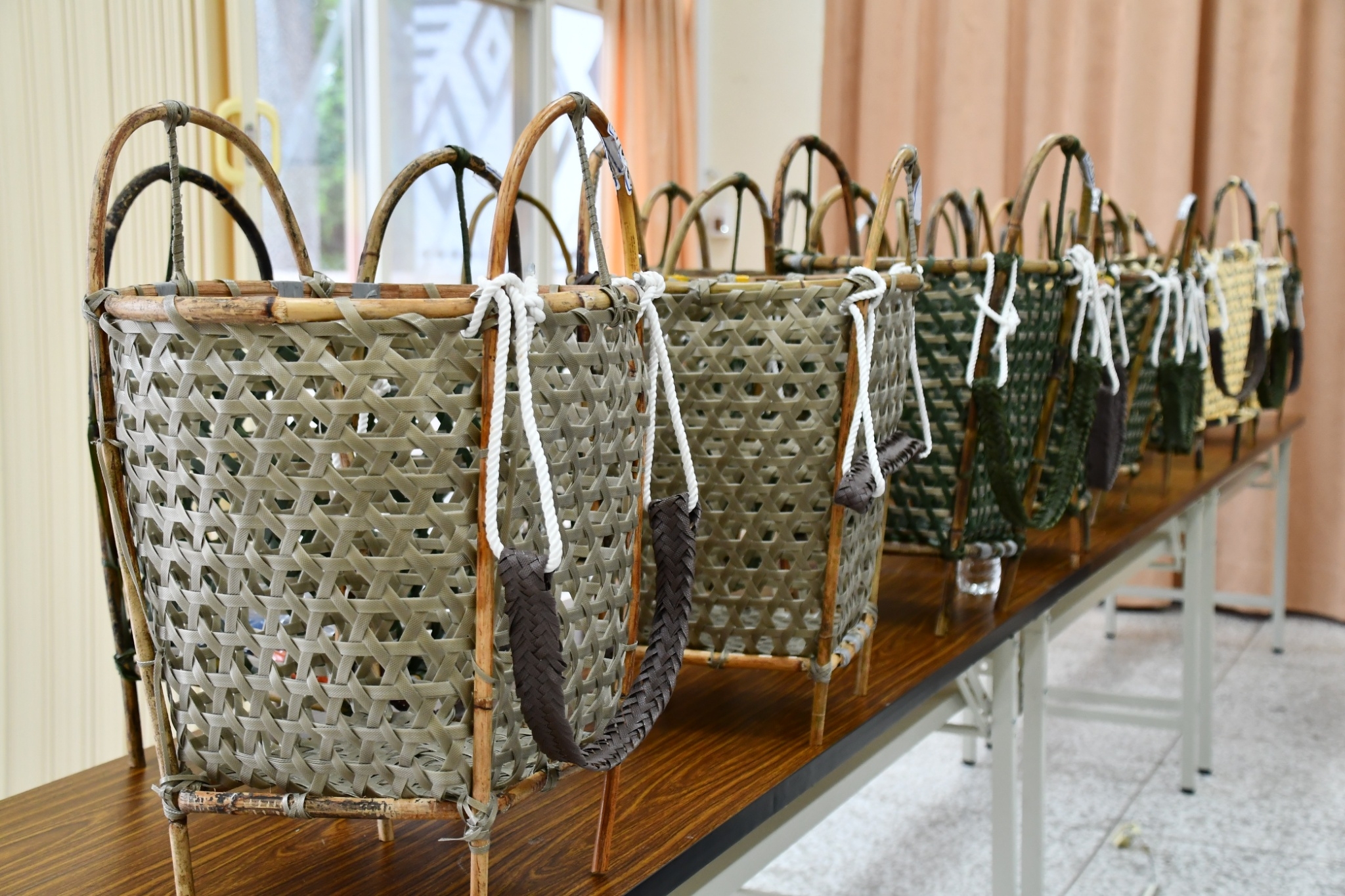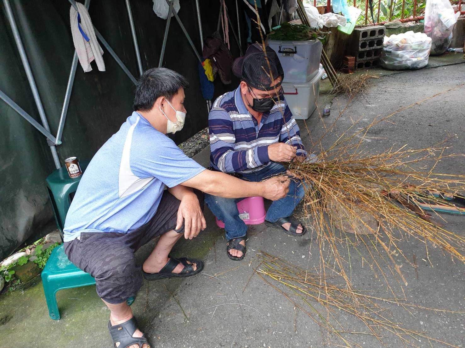 太魯閣族傳統背簍為部落婦女上山採集、耕種勞作時使用的生活器具,傳統製作方法運用竹、藤等天然取材,透過課程教授藤條處理的正統刀法、固定藤條、竹枝的技巧,在編製技藝上以六角形象徵祖靈的眼睛圖騰;而太魯閣竹掃把,更不同於一般市售竹掃把,透過親手層層綁定竹枝,讓其更不易脫落,同時因應居住地區型態,整體竹枝更為聚攏、小巧、修長。