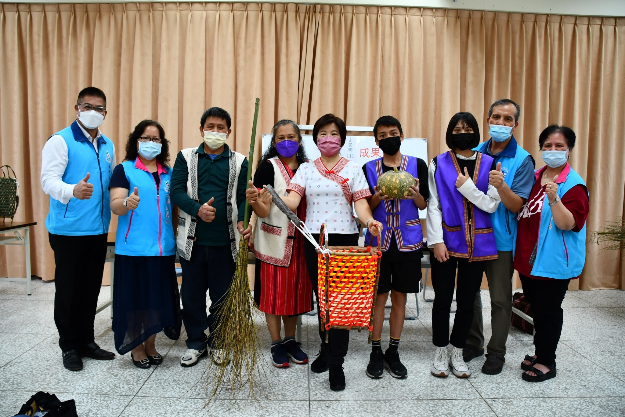 吉安鄉為到位推展太魯閣族傳統編織技藝文化,自五月份起開辦「Truku族傳統手工藝背簍、竹掃把製作研習」活動,邀請具有多年教學經驗的老師咪咪‧阿比司及助教周慶一,運用防疫分流小班制教學,傳授祖先傳統的生活技藝智慧。22日活動於原住民事務所二樓辦理結業儀式暨成果展,鄉長游淑貞特別穿著太魯閣族服到會分享學習成果,勉勵學員們續將太魯閣族工藝文化傳承且發揚。
