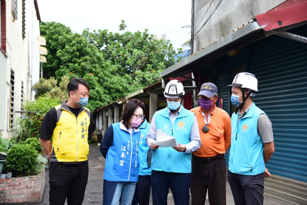 魏嘉賢市長今(23)日偕同建設課長徐國城前往中正路125巷及119巷視察道路施作工程,右腳受傷的縣議員魏嘉彥拄著拐杖來到現場,他與市民代表江如玲、江奉宜、許願神及蔡翼鍾,主農里長劉冠宏等人對於這項道路工程表達關切。