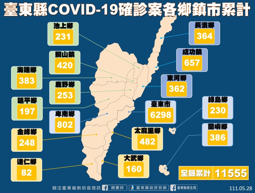 台東縣今(28)日新增 774名確診者,761名民眾戶籍或居住地分在台東、13名為外縣市醫院通報。目前台東縣累計確診個案 11555人、居隔者2191人。