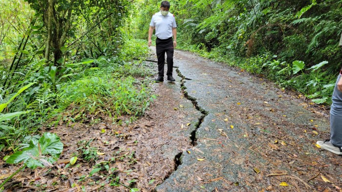 光復鄉水廣段馬錫山農路嚴重龜裂 路基有坍塌之虞 張峻議長邀水土保持局花蓮分局會勘 改善經費有望