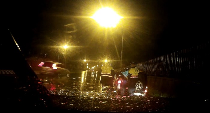 大雨視線不良民眾駕車駛入水溝受困 新城熱心警雨中協助